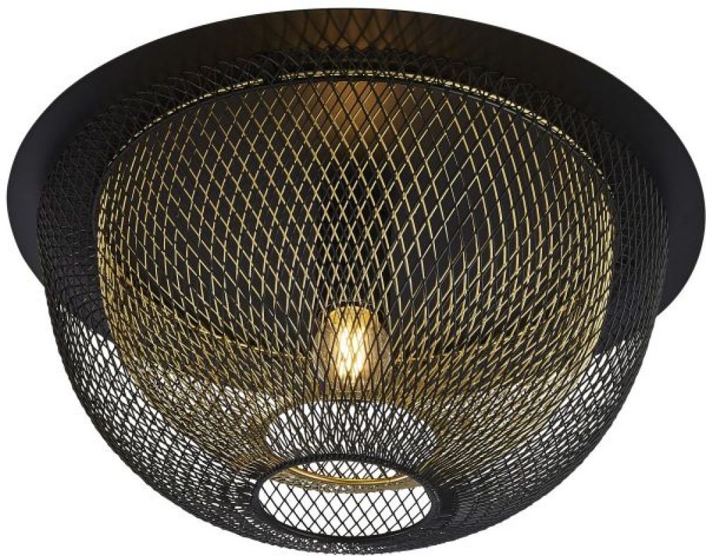 Diamond Net Matt Black and Gold Flush Ceiling Light 1 Lamp by Starbright (6840BGO)