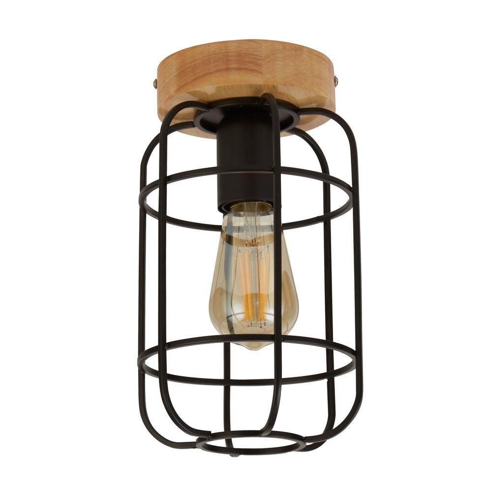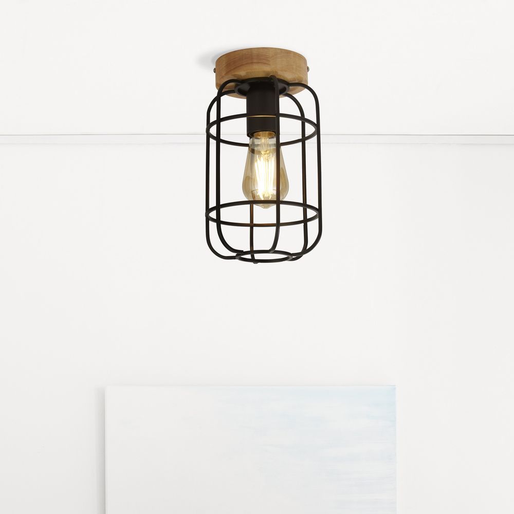 Vision Cage Ceiling Light - Matt Black & Wood - Searchlight - 81952-1BK