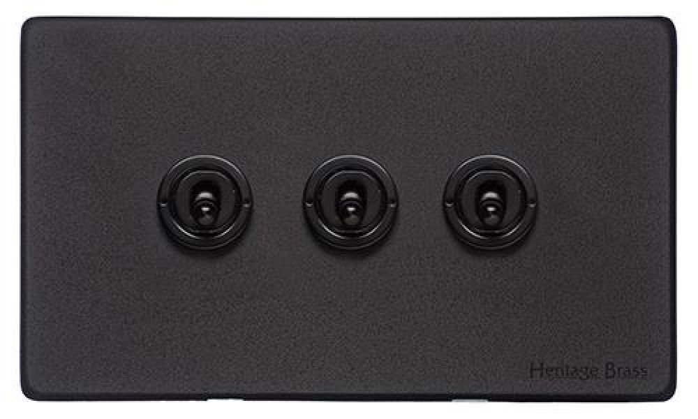 Heritage Brass XBK.1420 Vintage Matt Black 3-Gang 2-Way Dolly Switch Screwless (XBK.2420.BK)